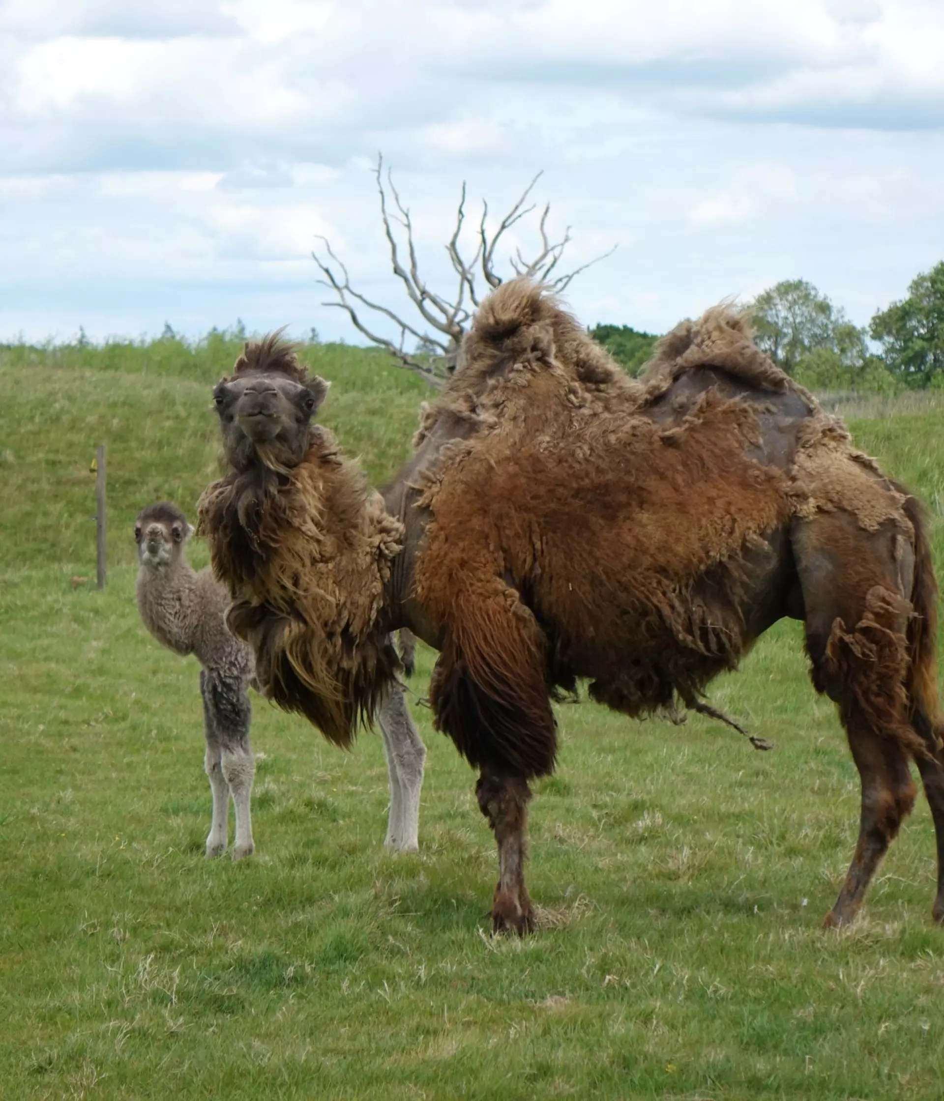 Bactrian camels have two large humps on their back which store fat and can be converted into energy when food is scarce. Their long thick woolly coat varies in colour from sandy beige to dark brown. Once a year they shed this coat in the summer months are re-grow it for winter meaning they can withstand extreme temperatures of up to -40C in winter and +40C in summer.