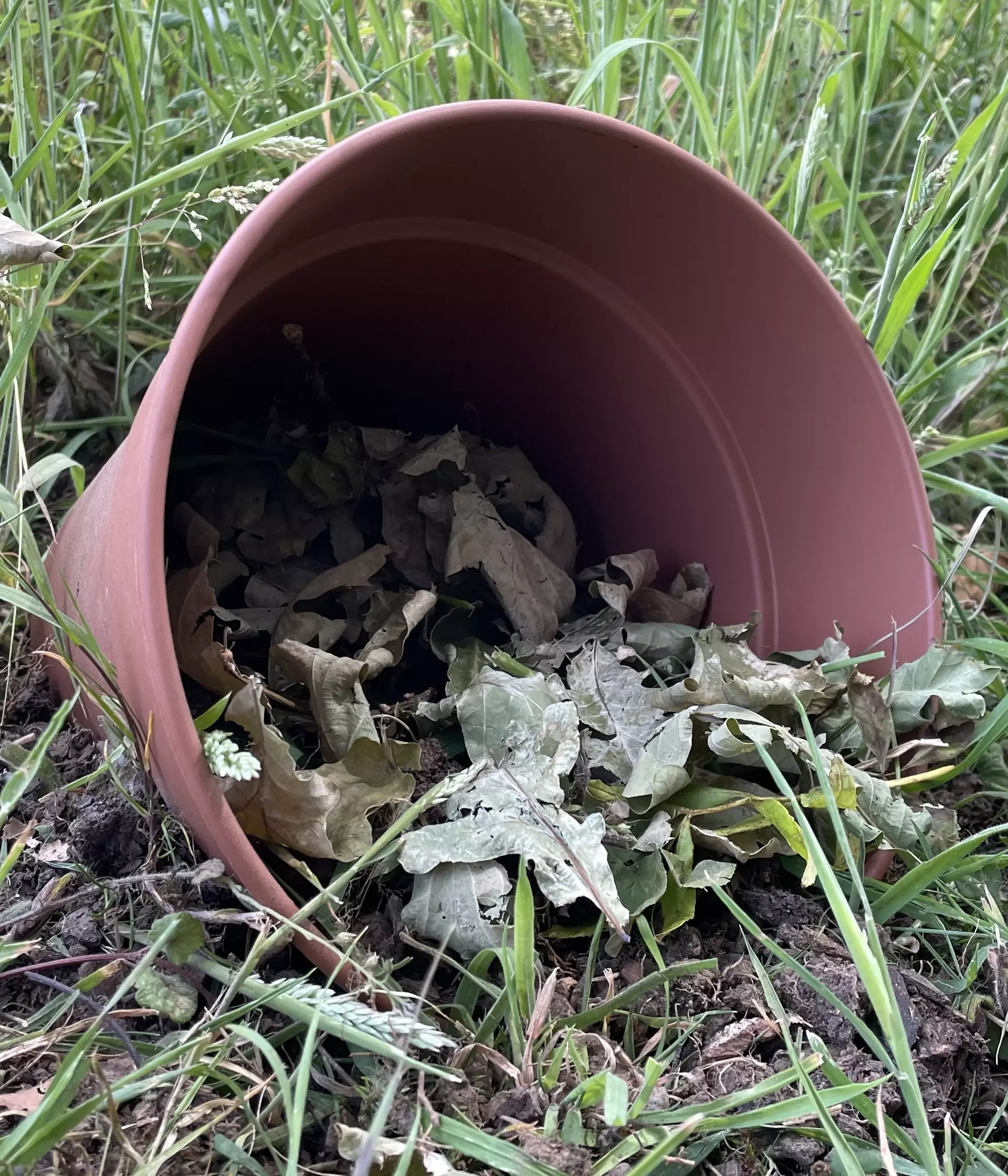 Fill the inside of the pot with soil and the other natural materials you collected including lots of leaves. This provides the perfect habitat for your new friends. Hopefully you’ll have frogs and toads hopping to their new home in no time!