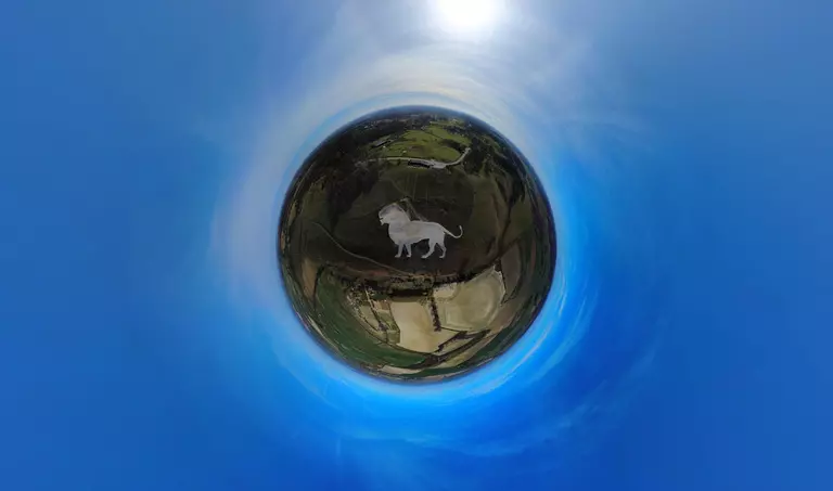 The white lion covers an area of around 6,500 square metres. It’s nearly 150 metres long - the tail alone is 4 metres wide! In fact, it's so big it was covered during World War II as it would have been a very useful navigation aid to enemy planes.